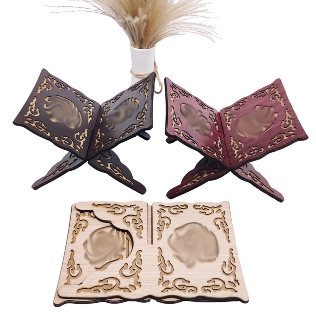 Arabic Black-White-Red Three-Color MDF Wooden Bookshelf, Carved Bookshelf, Engraved Reading Stand, Bracket